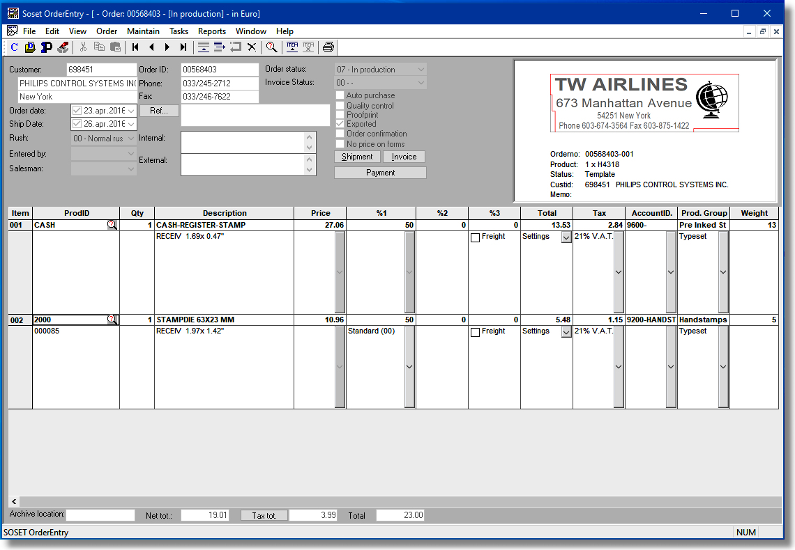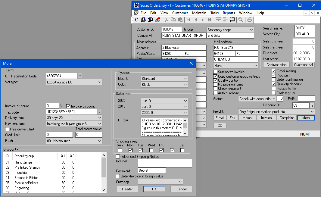 With the SOSET-software one or more persons (multi user version) can do order entry,