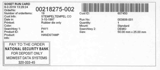 SOSET prints a run card for each item entered. These run cards can be used to update the production-status with any bar code scanner.