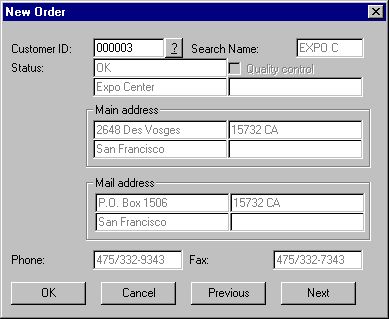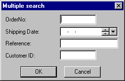 In the Order screen, you enter the customerID (with the buttons Previous and next you can browse through the database; the questionmark next to the CustomerID field you open the Multiple Search dialog box).