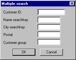 - All. Displays the Customer Multiple Search dialog box which enables you to enter data for the search routine. Shortcut: Ctrl + shift +A.