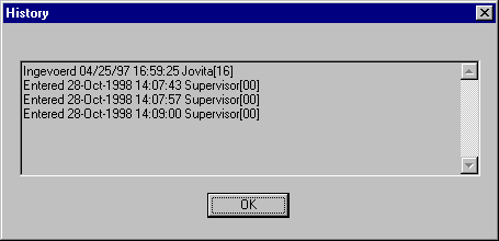 At the bottom of the screen there are 3 buttons. Press the OK button to leave this screen. Press History to see the history of the stamp ( this option is equal to the History command in the Info submenu) or press Stamp to view the technical data of the stamp (it is NOT recommended to edit any of these values).