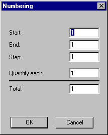 First you place the cursor on the screen to fix the exact position of the numbers to appear. Then you choose Numbering. Enter start and end of the numbers and step sequence. Entering the quantity each will result in a total quantity calculation to check.